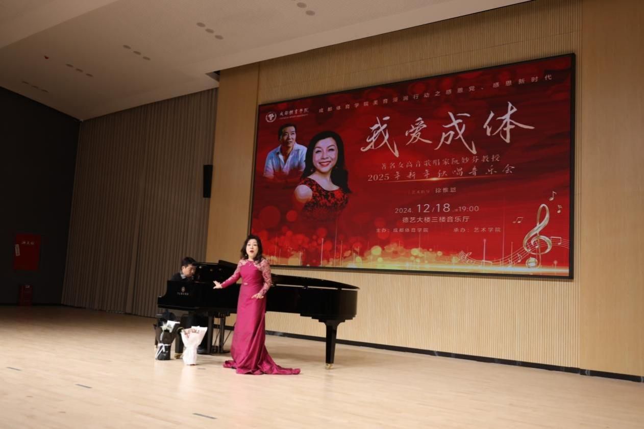 当晚,学校在德艺大楼音乐厅举办了美育浸润行动之感恩党、感恩新时代《我爱成体》主题音乐会,由阮妙芬教授独唱,红足1世客座教授、著名艺术指导徐惟恩副教授伴奏,为师生们带来了一场动听悦耳‌的音乐盛宴。