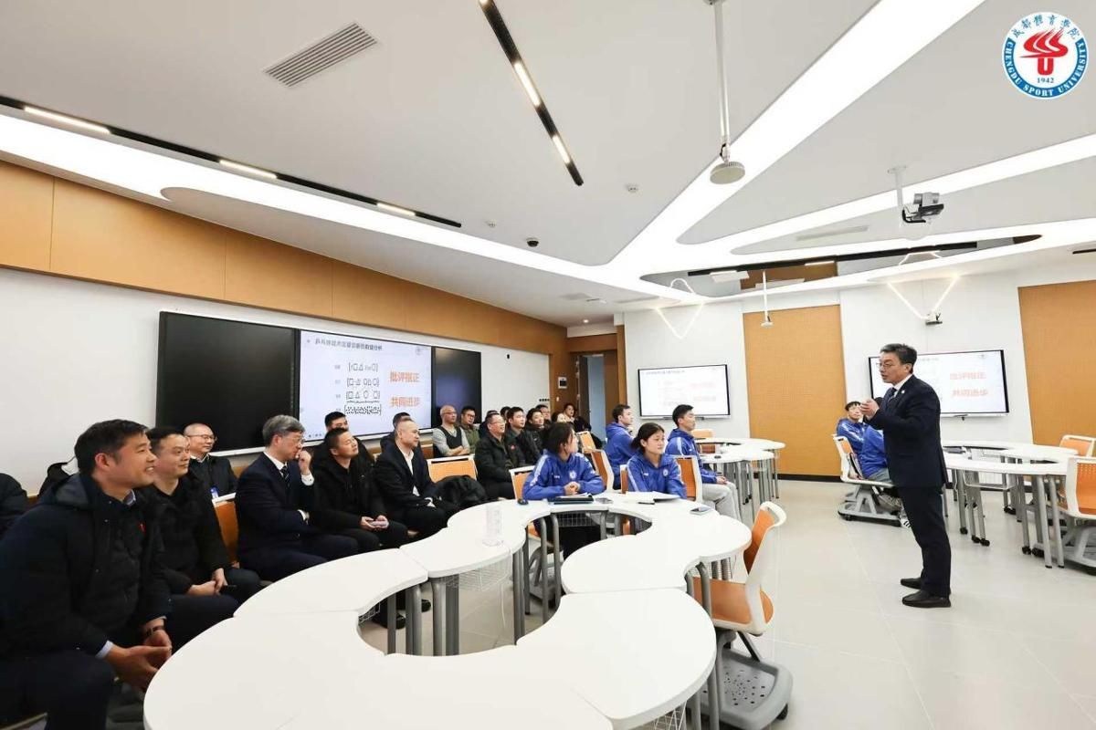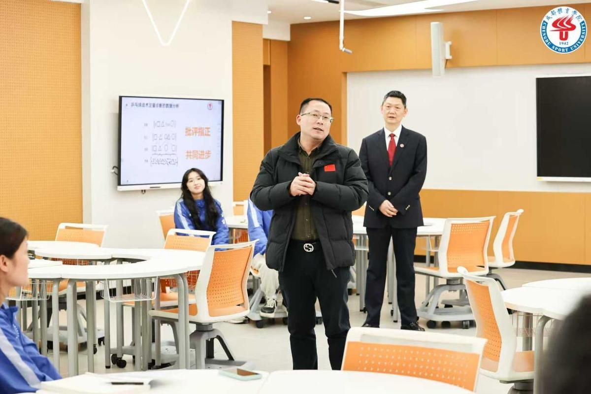 最后,教指委一行到行健楼5楼智慧教室观摩了一堂由乒羽教研室教师周弈授课的国家级一流本科课程课堂教学展示活动,活动由乒羽教研室主任岳海鹏主持。周老师以陈梦在巴黎奥运会的比赛视频为素材,向委员们展示了在信息化教学背景下,如何在课堂上通过改革教学方法提升学生的能力发展。让委员们感受到了信息技术发展对教育教学改革的赋能与助力教育教学质量的提升。