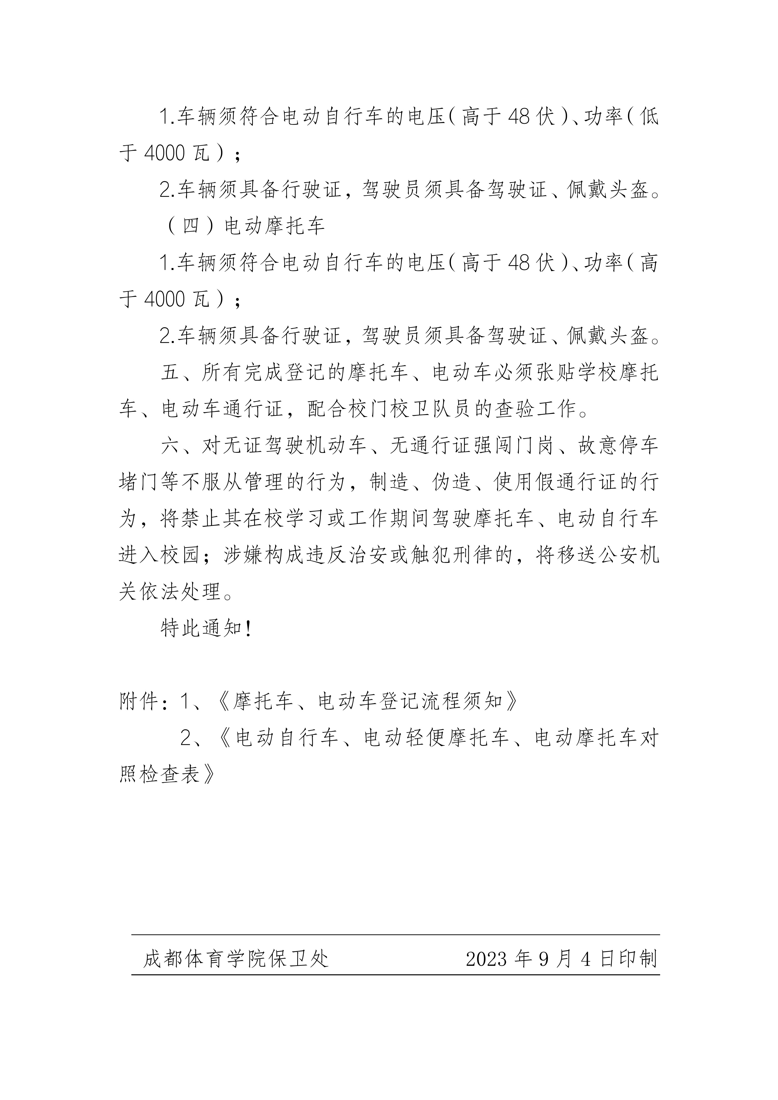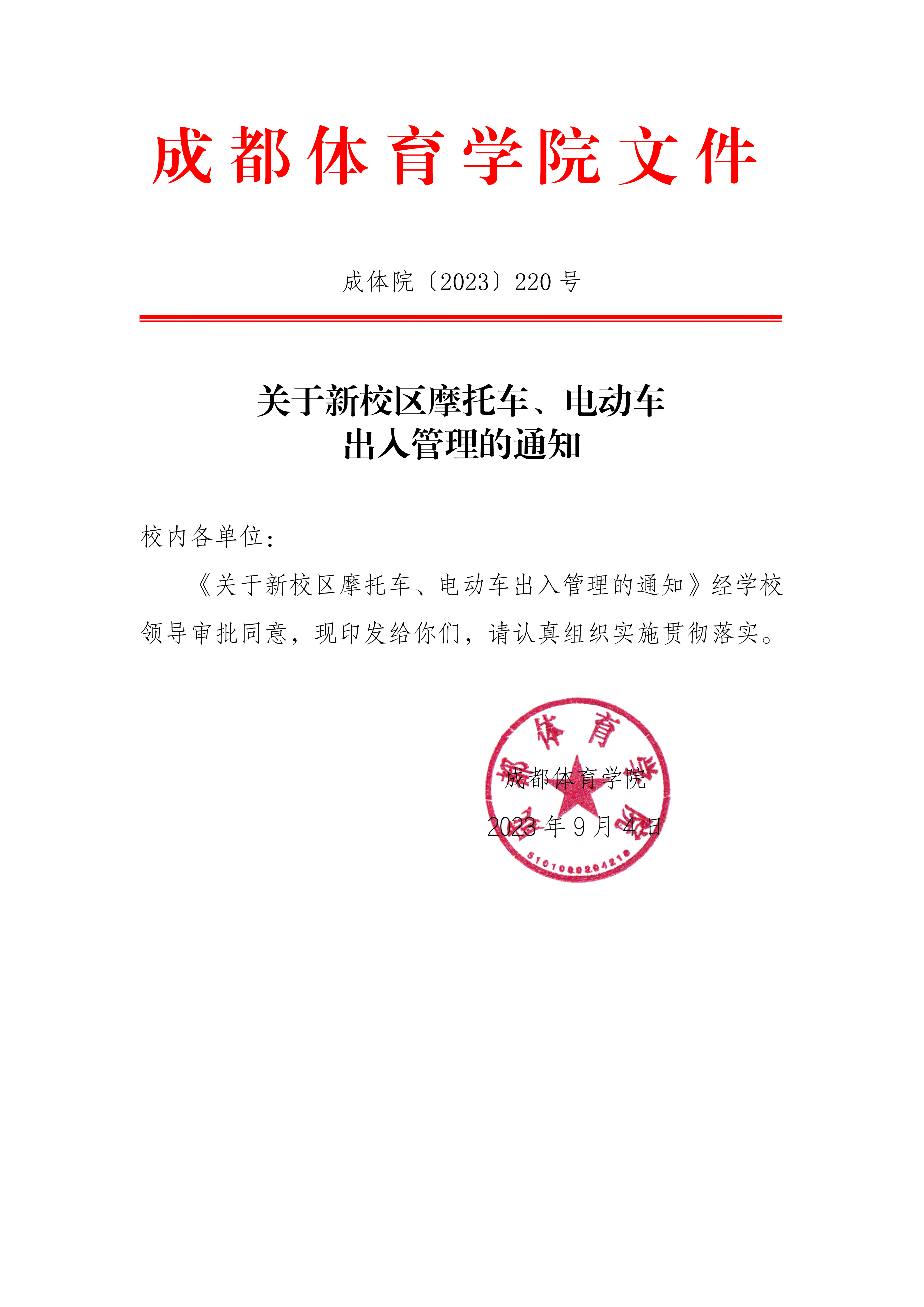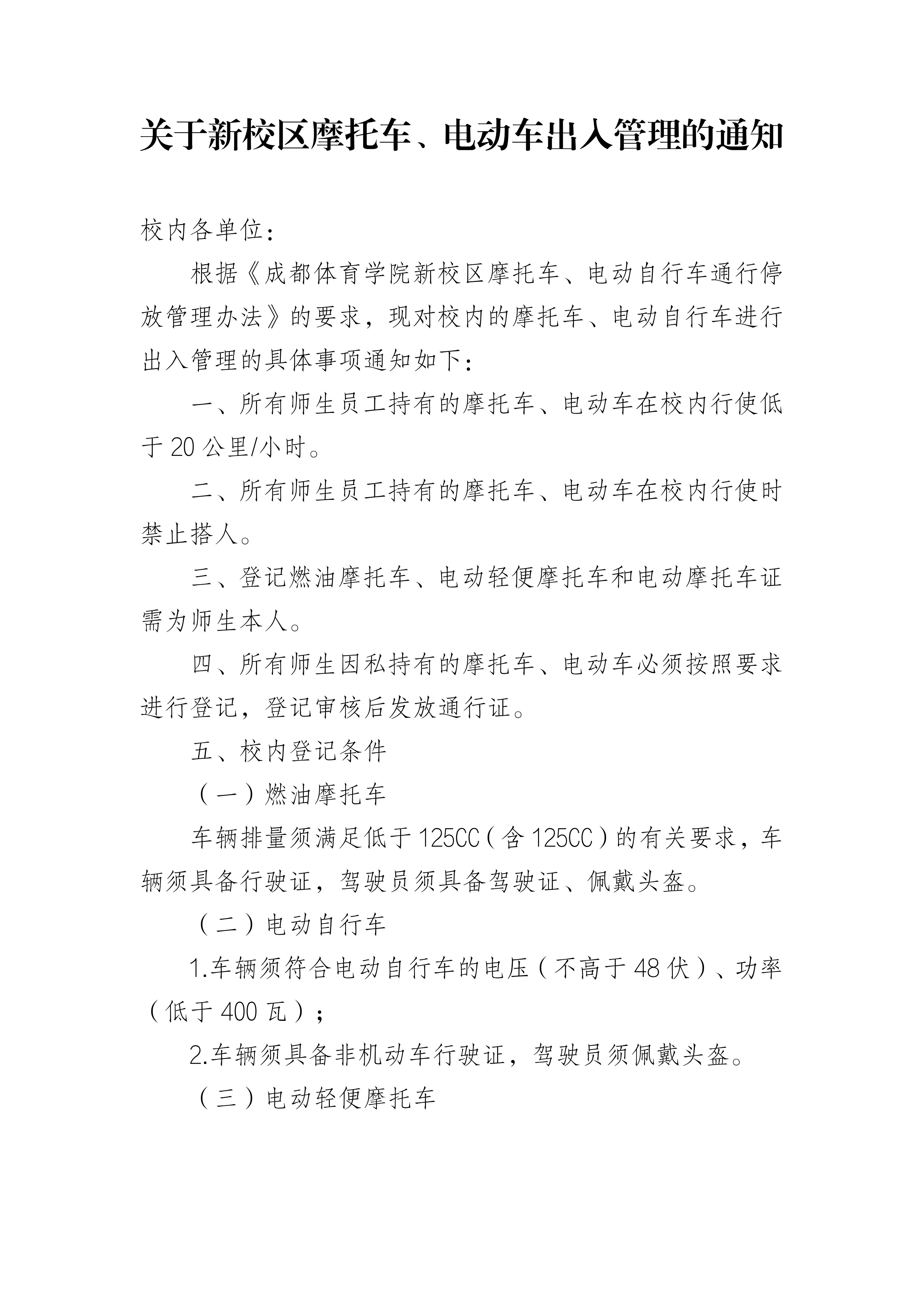 关于新校区摩托车电动车出入管理的通知