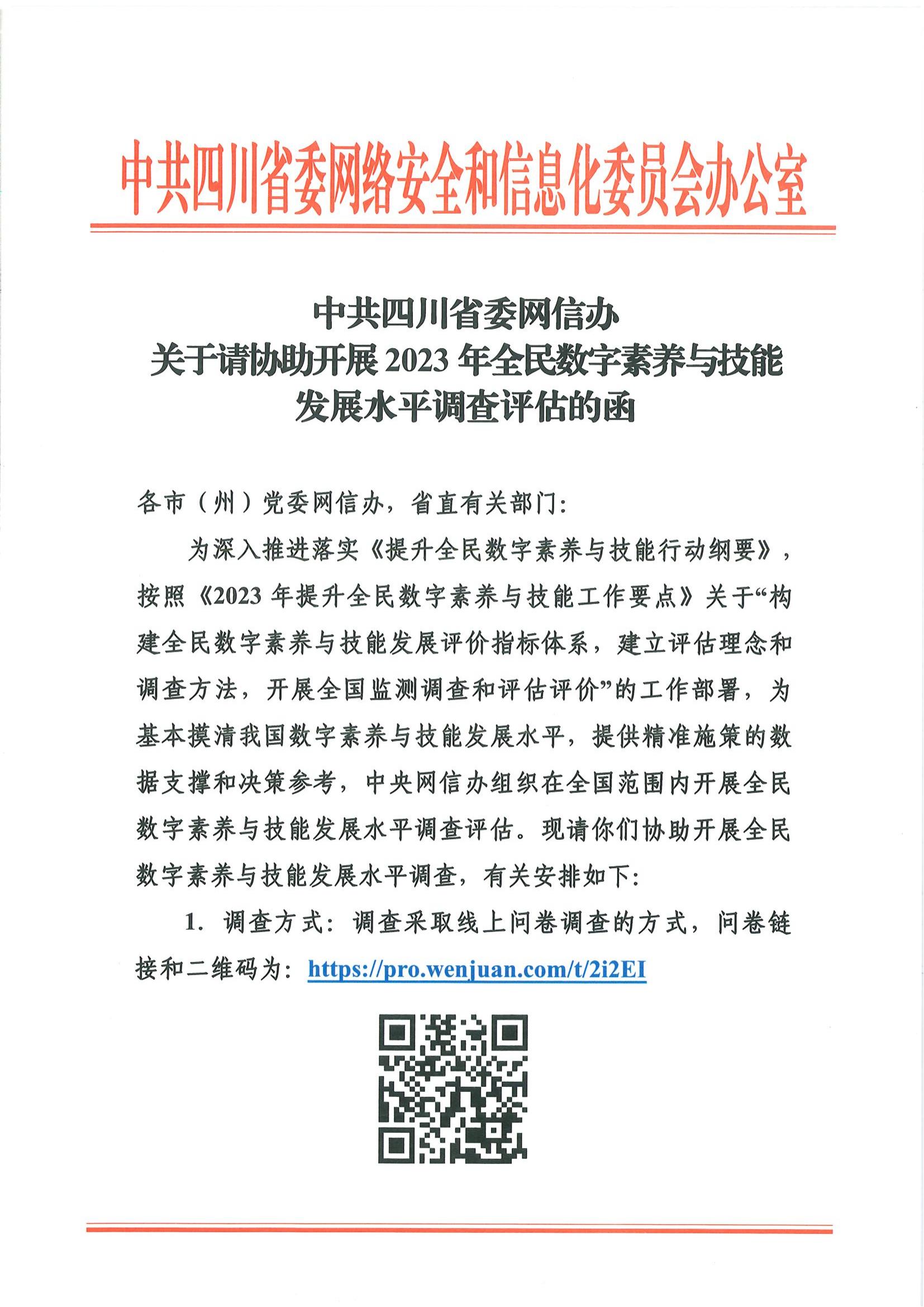 附件:中共四川省委网信办《关于请协助开展2023年全民数字素养与技能发展水平调查评估的函》