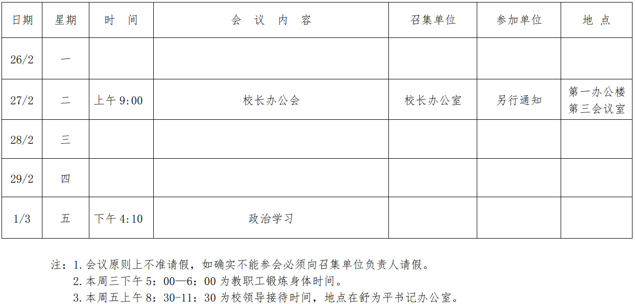 第一周会议安排