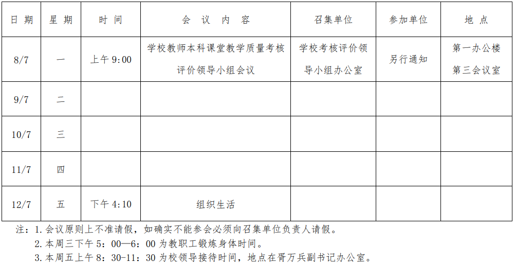 第五周会议安排