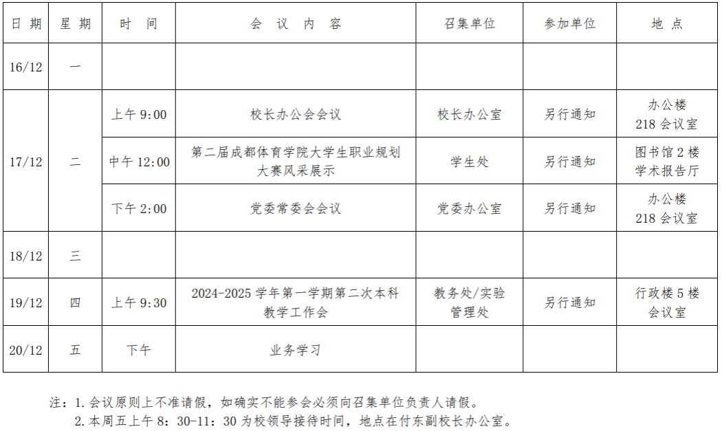 第十六周会议安排