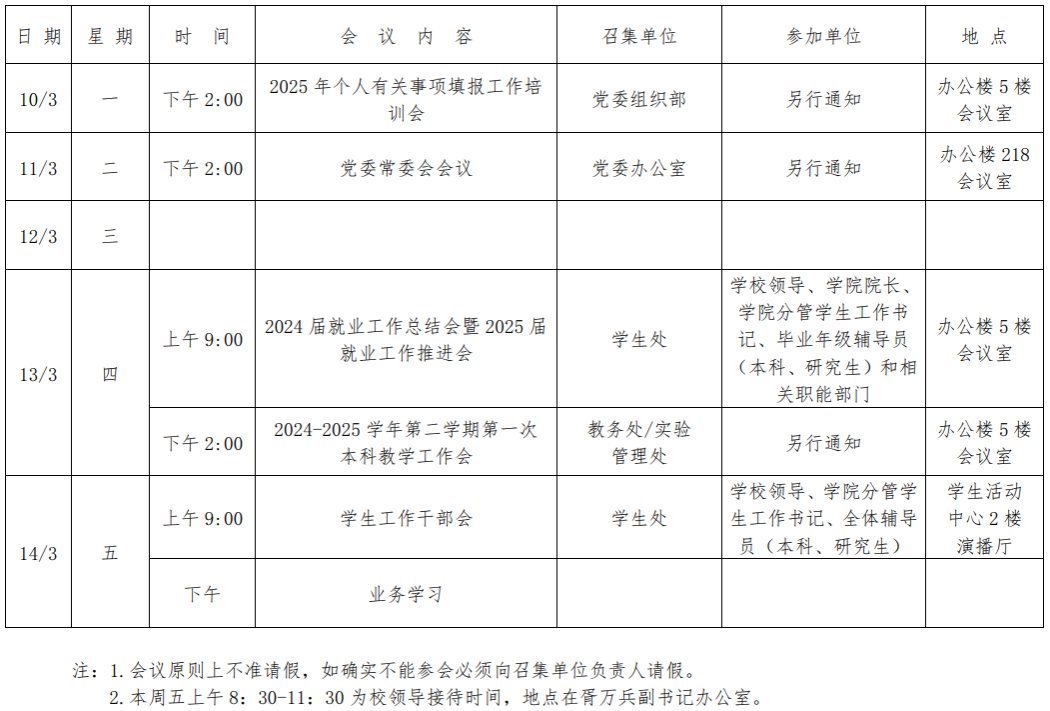 第五周会议安排