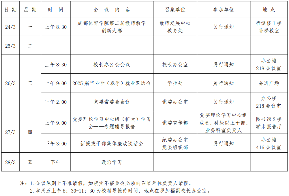 第五周会议安排