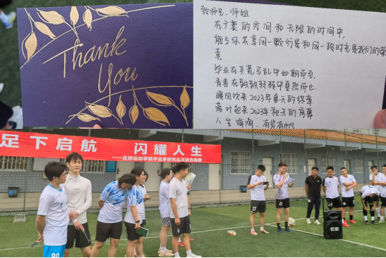 研究生足球告别赛,是每年毕业季为研究生举办的一场足球盛宴,今年的告别赛,在“师兄师姐我想对你说”环节,各导师组在校研究生通过书信的方式表达了自己对毕业师兄师姐的美好祝福。进入告别赛,在校研究生在中线列队欢迎研三队员入场,比赛过程中,一个个巧妙的配合和精彩的现场解说引得全场沸腾,告别赛在愉快、美好中结束,也为他们三年的研究生学习生涯,画上圆满的句号。