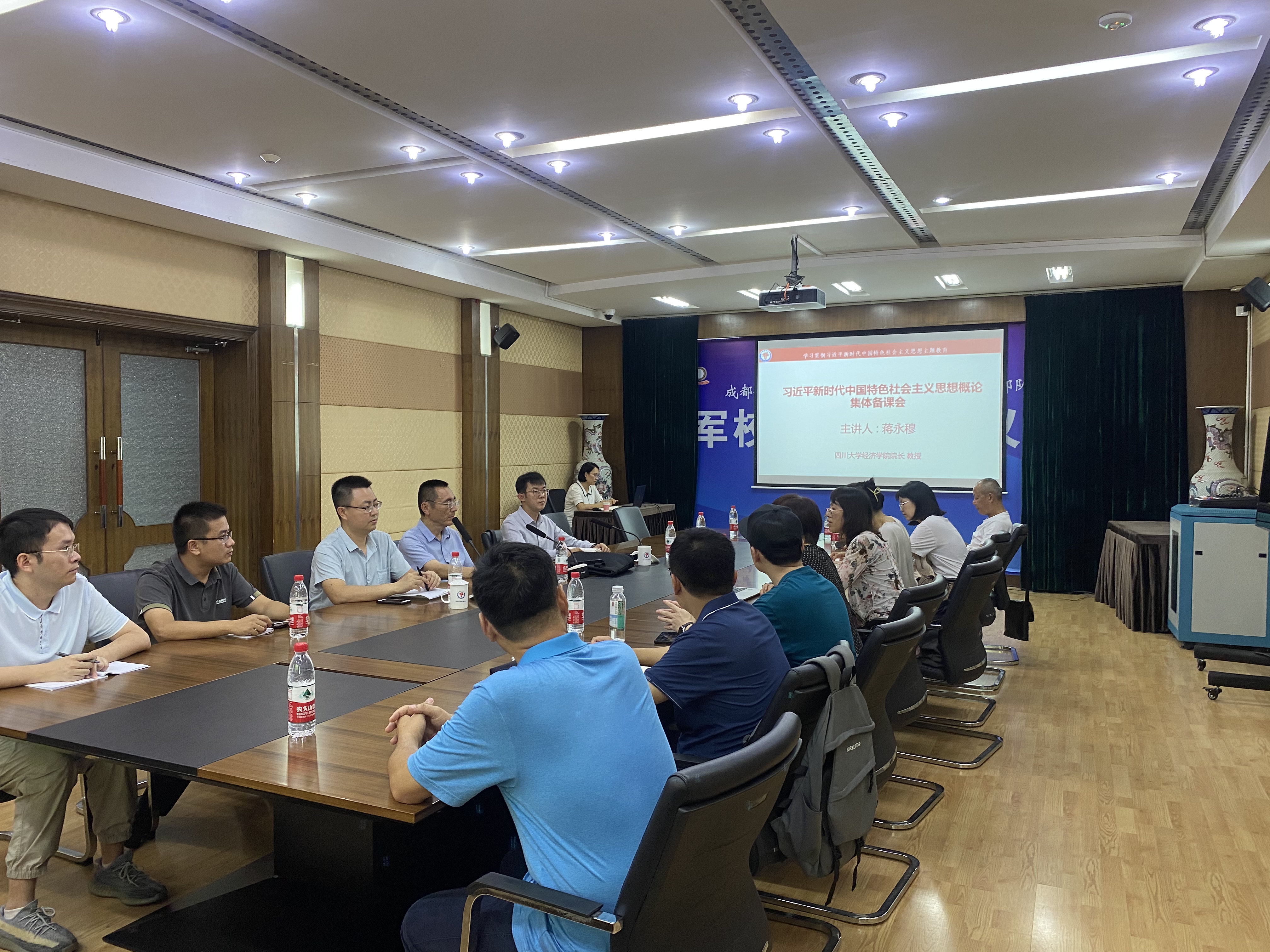为了进一步加快推动习近平新时代中国特色社会主义思想进教材、进课堂、进头脑,切实提高《习近平新时代中国特色社会主义思想概论》课程的教学实效性,巩固主题教育成果,9月9日下午,马克思主义学院在行政楼三楼会议室召开了《习近平新时代中国特色社会主义思想概论》课程(以下简称《概论》)集体备课会。中宣部《概论》教材编写组主要成员、四川大学经济学院院长蒋永穆教授,《概论》教材编写组主要成员、四川大学马克思主义学院郭绍均副教授,《概论》教材参与撰写人员、四川大学马克思主义学院张晓磊副教授三位专家到会指导集体备课会。马院全体教师参与会议。会议由马克思主义学院党委书记、院长陈晔教授主持。