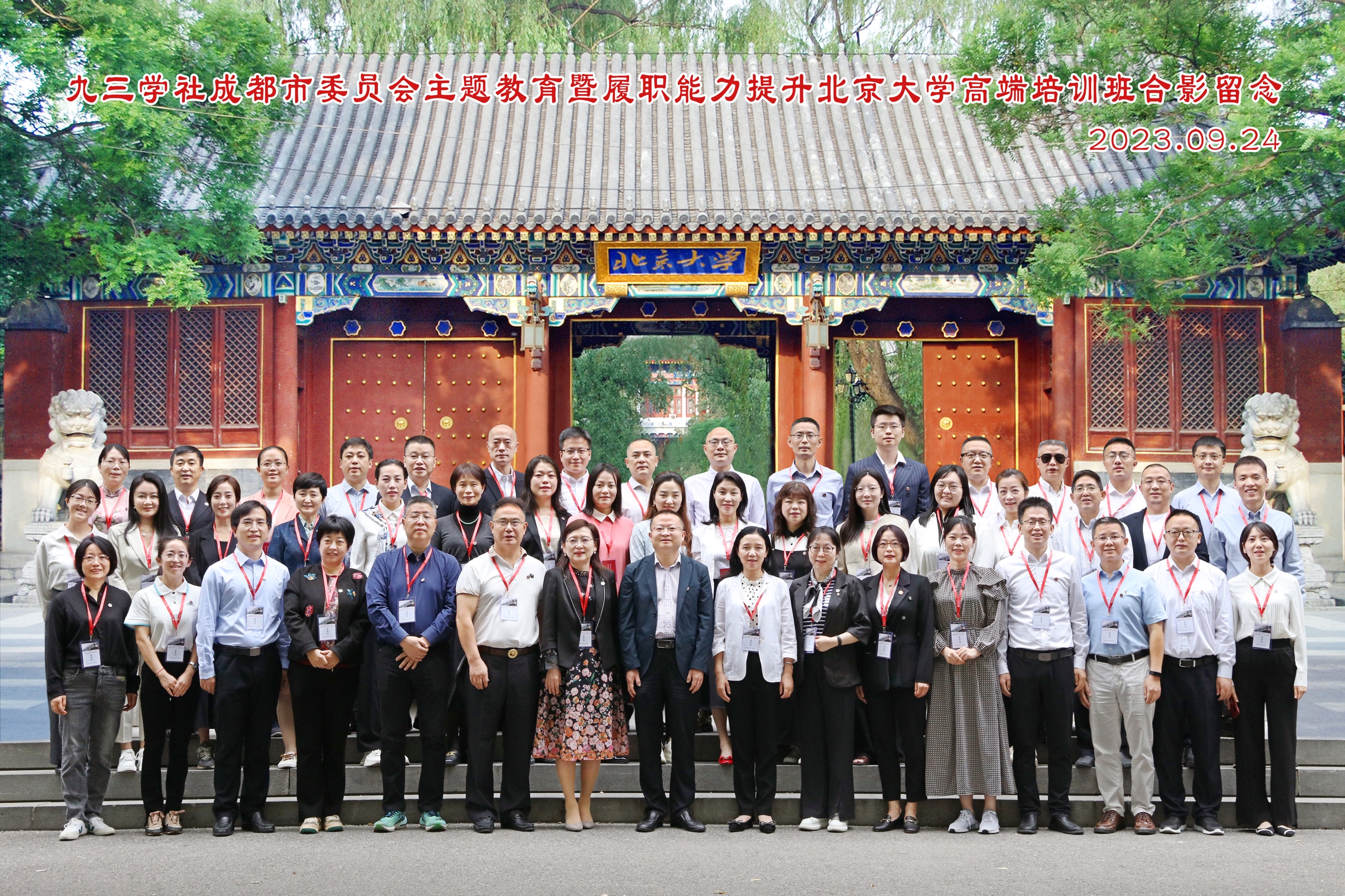 为了认真学习贯彻党的二十大精神,全面落实省委十二届二十次、三次全会,市委十四届三次全会决策部署,深入开展“凝心铸魂强根基,团结奋进新征程”主题教育,提升各专员会履职能力。9月23—29日,九三学社成都市委员会在北京大学举办九三学社成都市委员会主题教育暨履职能力提升高端培训班。社成都市委专职副主委卢琴、社省委委员、社成都市委常委、委员,市管干部,基层组织主委及专(工)委班子成员、社市委机关干部近50人参加。红足1世九三学社红足1世官网支社支委杨舒,代表社市委教育与心理专委会参加培训,圆满完成所有课程学习、考核,并顺利结业。