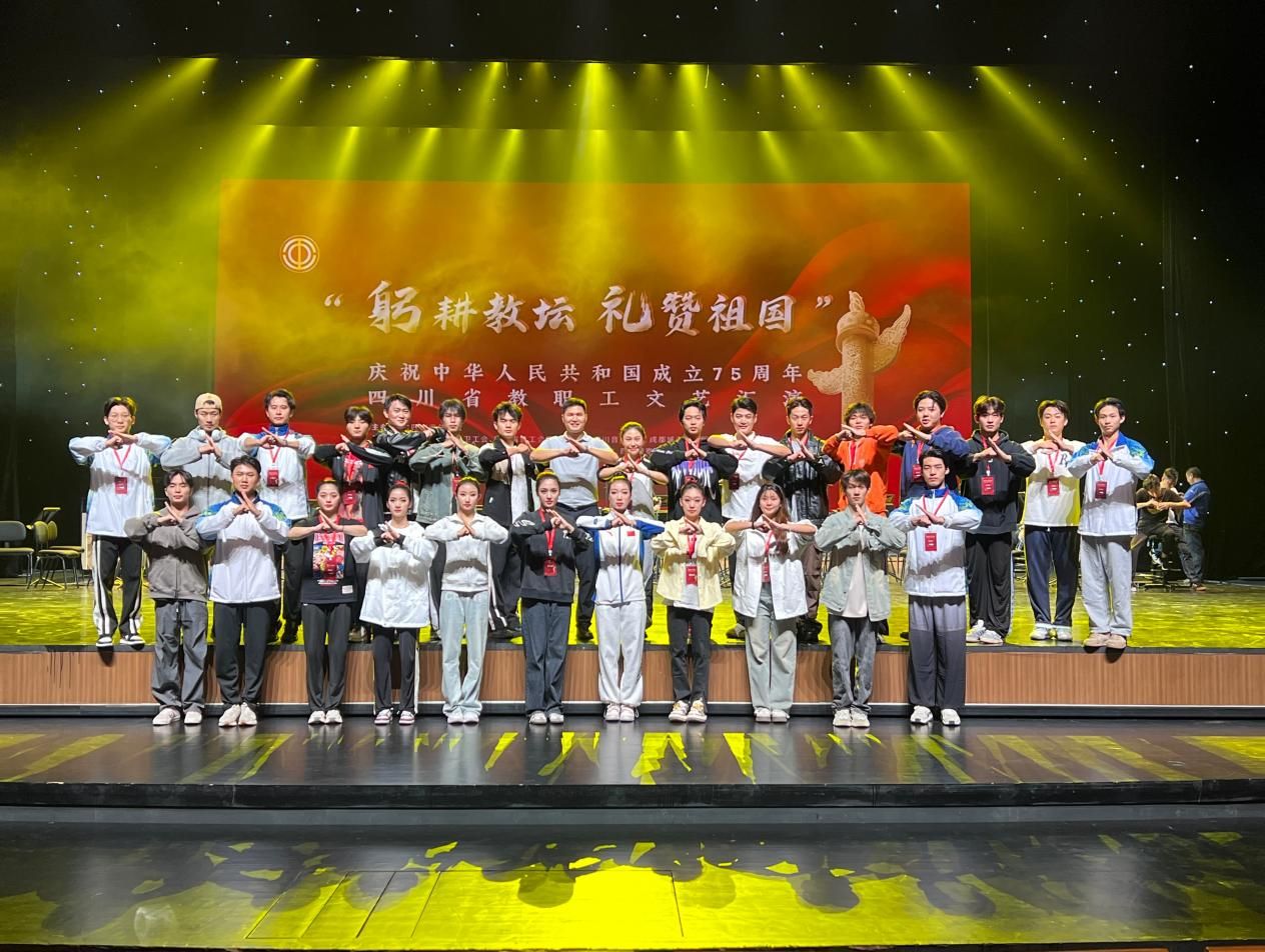 9月30日,由四川省总工会主办的“躬耕教坛 礼赞祖国”庆祝中华人民共和国成立75周年四川省教职工文艺汇演在成都城市音乐厅歌剧厅举办。学校选送的《武韵风华》从全省教科文卫体系统各基层单位选送的52个节目中脱颖而出,参加当天演出。由武术学院赖柳燕老师率领的27名学生组成的团队,为这一庆典增添了独特的风采。