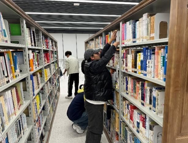 活动伊始,大家满怀热忱,提前集结于图书馆门前。在图书馆老师的悉心指导下,他们迅速掌握了图书排架的基本知识与技巧,学会了如何精准地将每一本书籍归位,并巧妙地利用书笠保持书籍的整洁与有序。随后,大家自发组成三支小队,分工合作,有条不紊地投入到图书整理工作中。他们穿梭于书架间,将散落的书籍一一归位,确保每一本书都能找到属于自己的“家”,为图书馆增添了几分温馨与雅致。