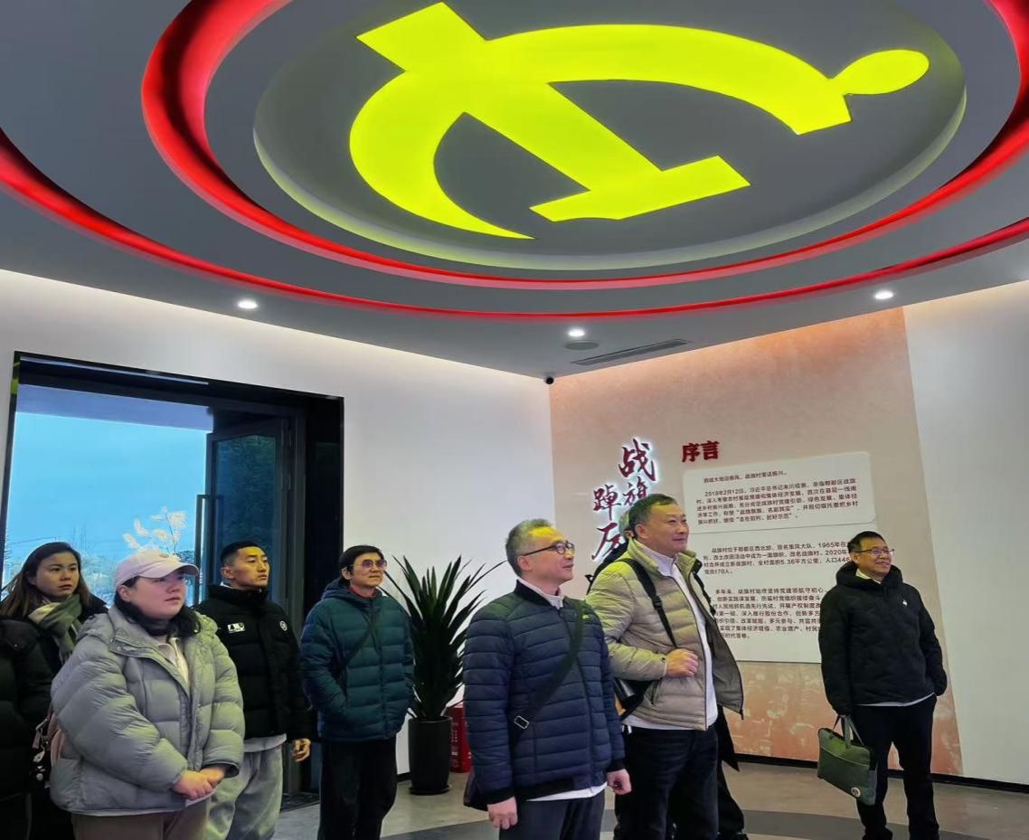 本次学习分两个阶段进行。第一阶段为红色文化实地参观学习。学院党员骨干队伍参观了战旗村初心馆、党群服务中心、精彩战旗、村史馆等红色文化教育点,实地感受到战旗村的创新精神与建设成效。参观结束后全体党员一同重温入党誓词宣誓。