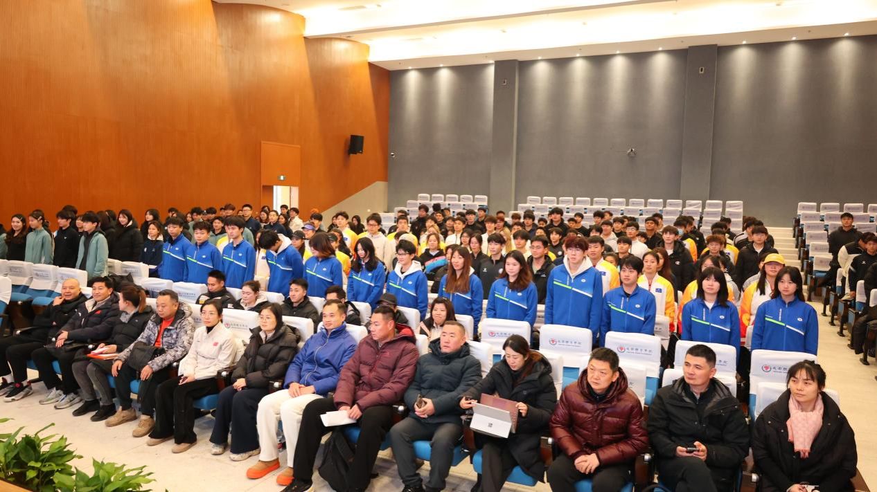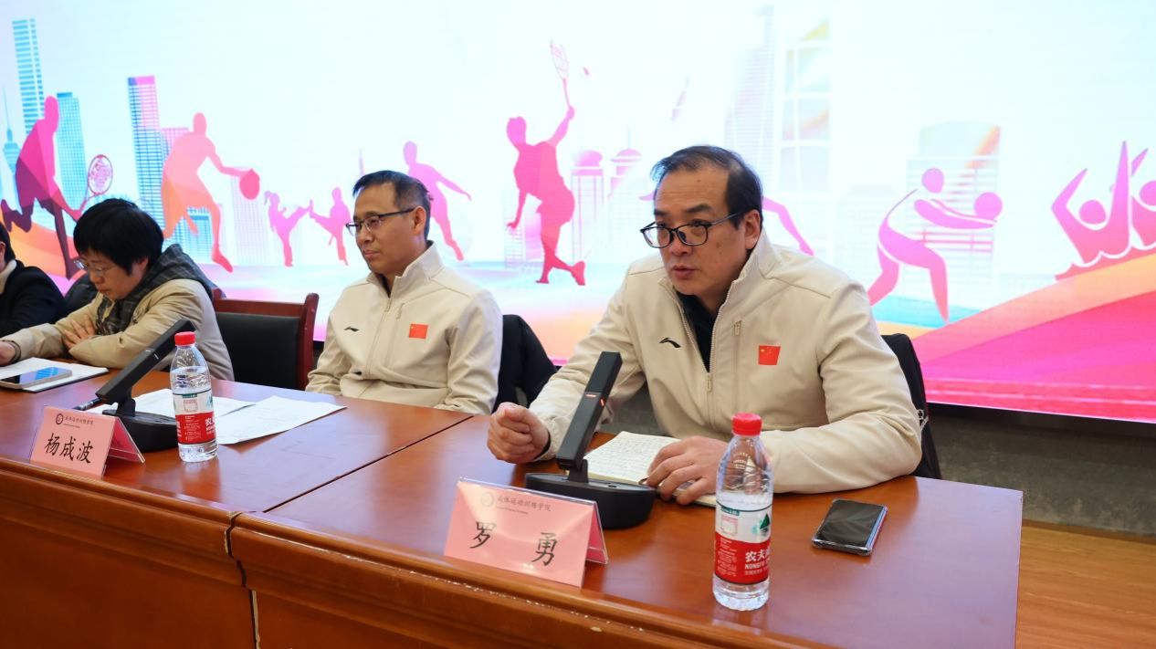 彭健书记对全体教练员和所有运动员的付出与努力表示了高度肯定与赞赏,对之前取得的优异成绩表达了衷心感谢与热烈祝贺。并就进一步持续推进学院竞赛工作高质量开展提出要求。他强调,要提高政治站位,思想自觉、政治自觉、行动自觉。要坚持高标准、严要求,有序推动竞赛工作落细落实,精心营造出浓厚的体育育人氛围。要始终坚持问题导向,总结经验、补齐短板、守正创新,更好地展示我院教学成果,展现学院师生奋发向上、斗志昂扬的精神风貌,进一步彰显运动训练学院的特色与风采。