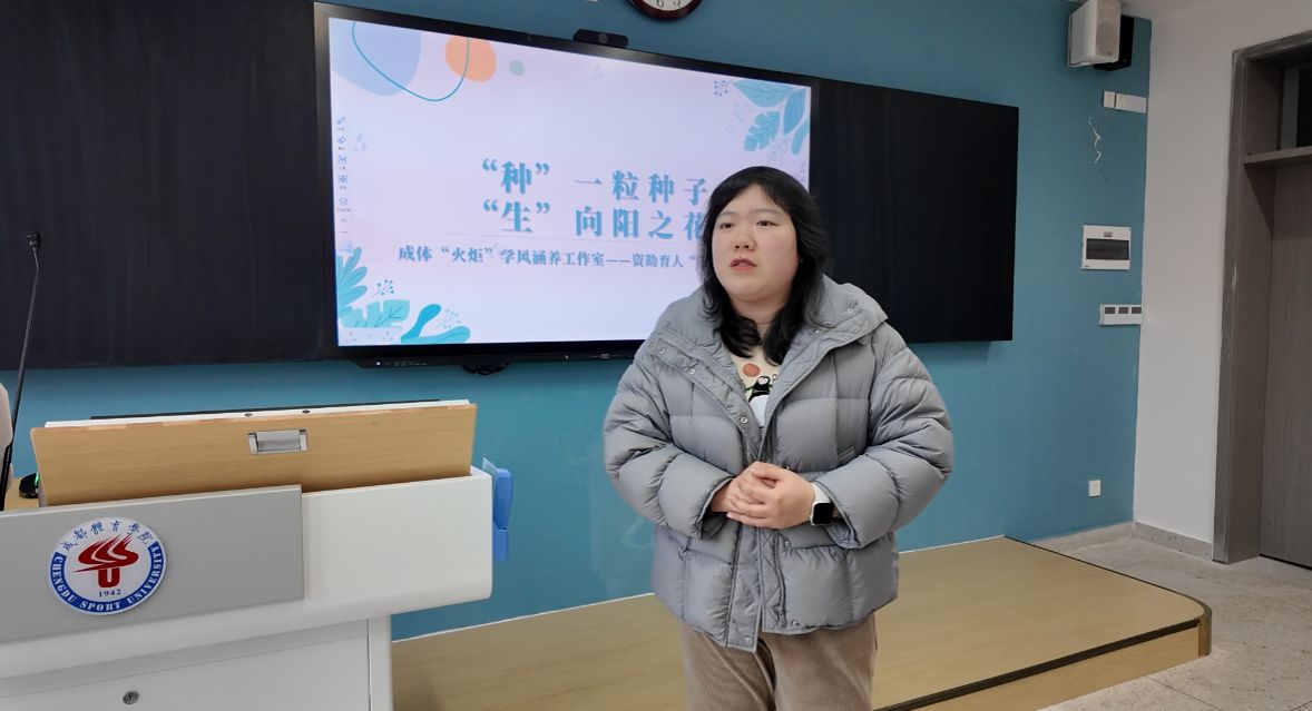 2024年12月10日,在成体“火炬”学风涵养工作室的指导下,由运动训练学院2022级学管办牵头,联合体育教育学院、经济管理学院受国家资助同学代表开展了“种”一粒种子,“生”向阳之花资助育人“行”交流分享活动。活动由运动训练学院王方老师主持,学生处学生资助科周钰洁老师出席。