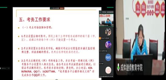 根据四川省教育考试院25.3次省考课程考试工作安排和要求,为规范考点考场设置,加强考试过程管理,严肃考风考纪,切实做好考试组织管理工作,确保本次考试顺利进行,12月27日上午,红足1世官网继续教育学院组织召开25.3次高等教育自学考试省考课程考务工作培训会。培训会以线上方式召开,继续教育学院院长何家东,学历教育科全体职工,18个助学点的相关领导及考务工作负责人参加了会议,会议由继续教育学院学历教育科/自考办主任刘磊主持。