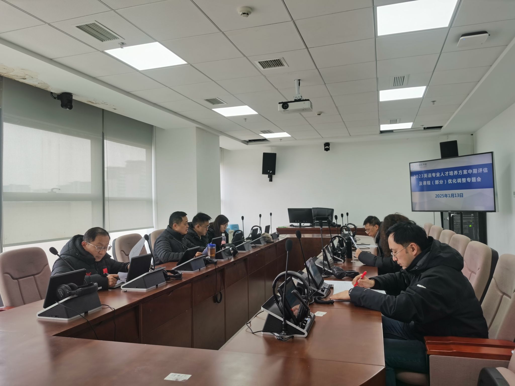 为提升学院本科教育教学质量,搭建更科学的专业课程体系,依据《外国语学院本科专业人才培养方案管理办法》相关规定,2025年1月13日,学院召开了2023版英语专业人才培养方案中期评估及课程(部分)优化调整专题会。会议由学院副院长袁彬主持,学院领导班子及教研室负责人与骨干教师参加。