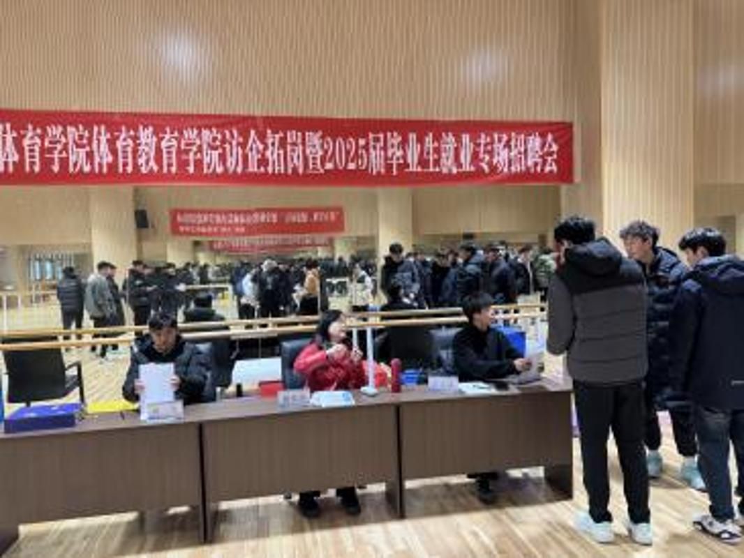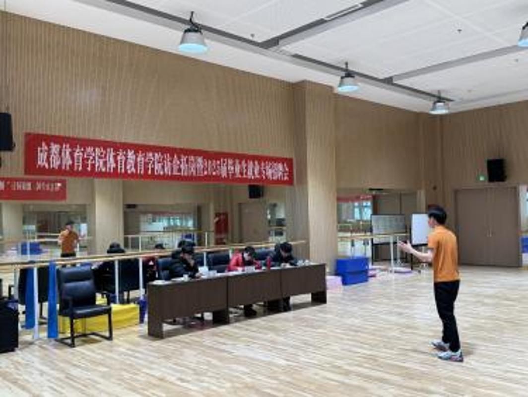 3月6日,成都市新都区北星小学曾祥琼校长一行受邀到体育教育学院开展专场招聘会。体育教育学院党委副书记杨彪、本科生第四学管办全体教师及50余名相关专项毕业年级同学参加招聘会。
