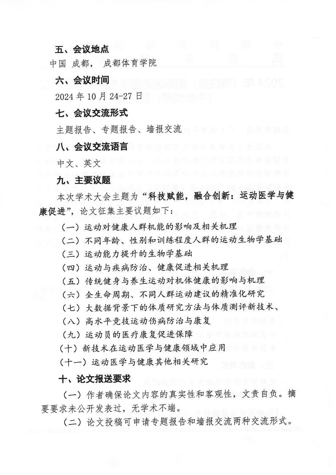 2024(第四届)国际运动医学与健康学术会议(中国成都)征文通知