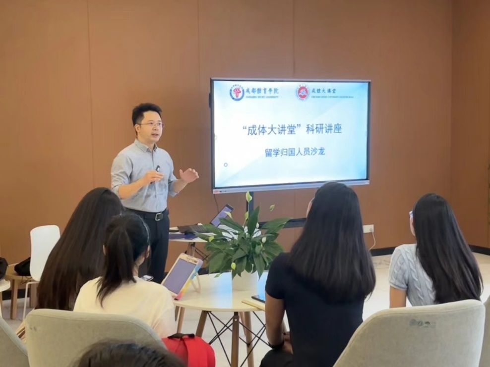 9月20日,成体大讲堂“留学归国人员沙龙”系列活动第二期在图书馆二楼交流创新区顺利举行。本期沙龙由历史文化学院张小林教授主讲。他以《当代西方体育哲学的发展历程与学术前沿》为题,从体育哲学的概念、体育哲学学科发展史、西方体育哲学核心议题和前沿趋势几个方面进行了深入的探讨。此次沙龙吸引了来自学校各院系的青年教师、博士及硕士研究生40余人参与。