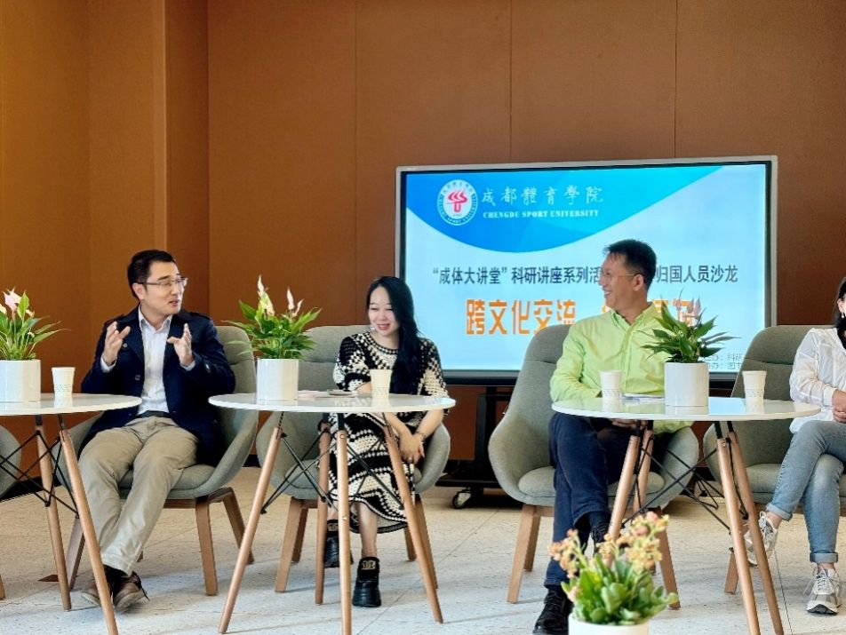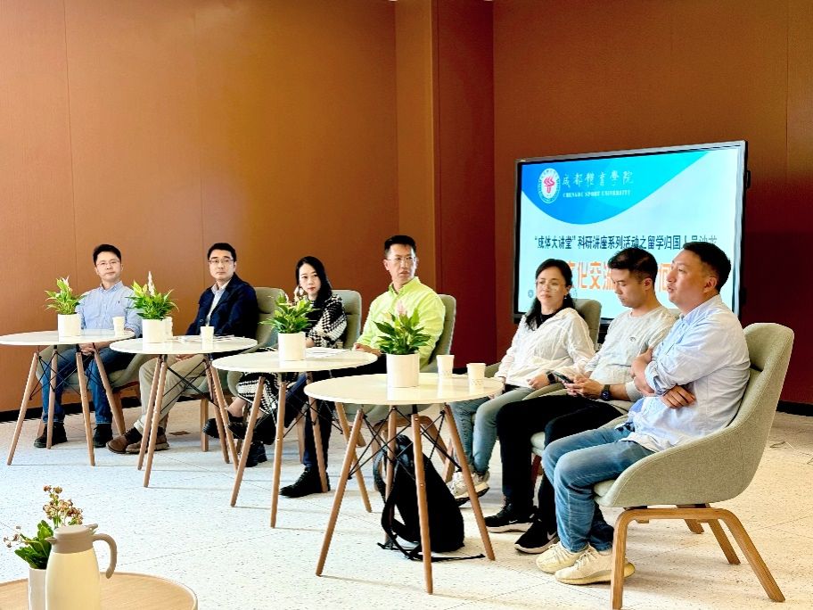 10月15日下午15:00,“成体大讲堂”留学归国人员沙龙在图书馆二楼创新交流区开讲。本次沙龙邀请历史文化学院张小林教授、艺术学院李韵葳教授、运动医学与健康学院李顺昌教授、武术学院龚茂富教授、体育教育学院吴艳红副教授、国际合作与交流处杨飞处长六位嘉宾做客。沙龙由科研处副处长田建强教授主持。本次沙龙吸引了来自学校各院系的青年教师、硕博士研究生及本科生40余人参与。
